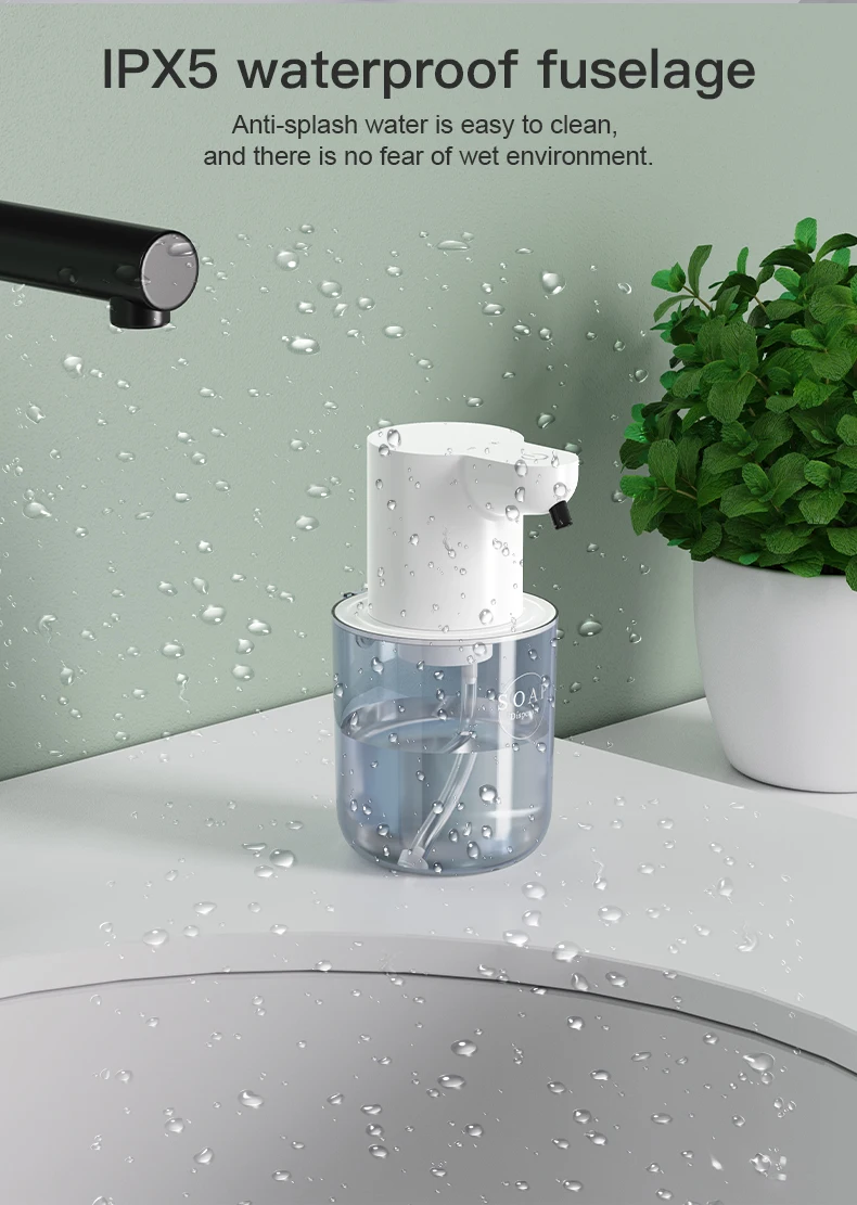 5. Adjustable and Water-resistant Design: The soap dispenser features four adjustable liquid output levels and is IPX5 waterproof, making it resistant to splashes and ideal for various settings.