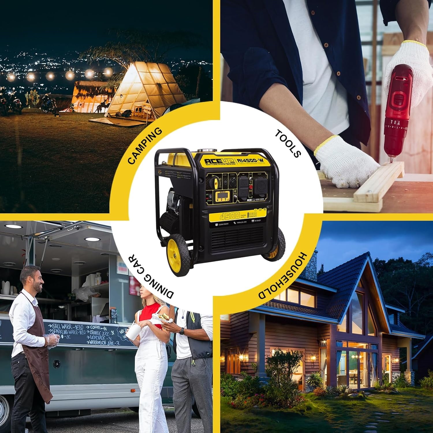 Aceup Energy 4500 Watt Open Frame Gasoline Inverter Generator with Wheels, Gas Generator 4000W RV-Ready, EPA Compliant