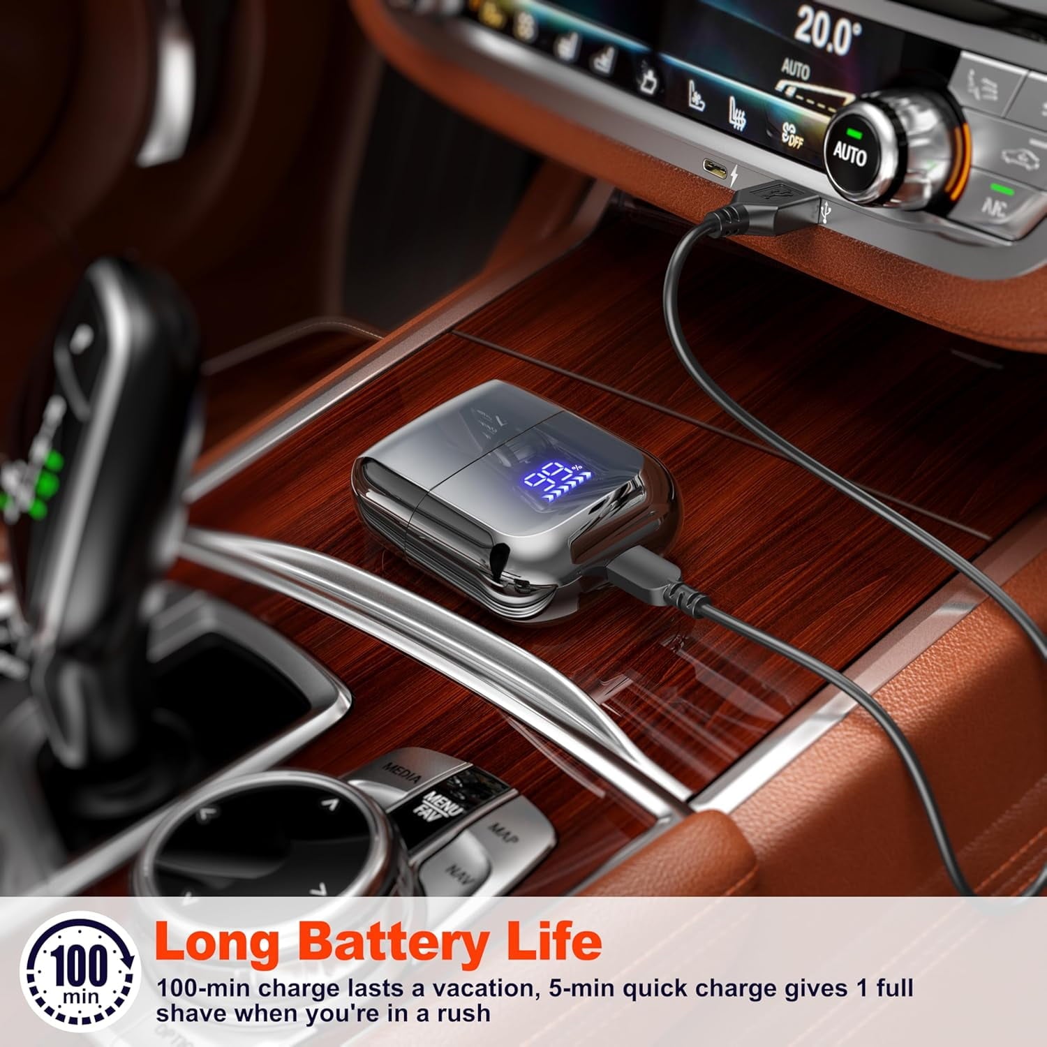 - LED Display: Built-in HD LED display, real-time display of power, cleaning reminders, travel lock status and other information. It is more intuitive when you use this electric razors for men, ensuring that you can always grasp the status of the men’s shaver and avoid unnecessary trouble.