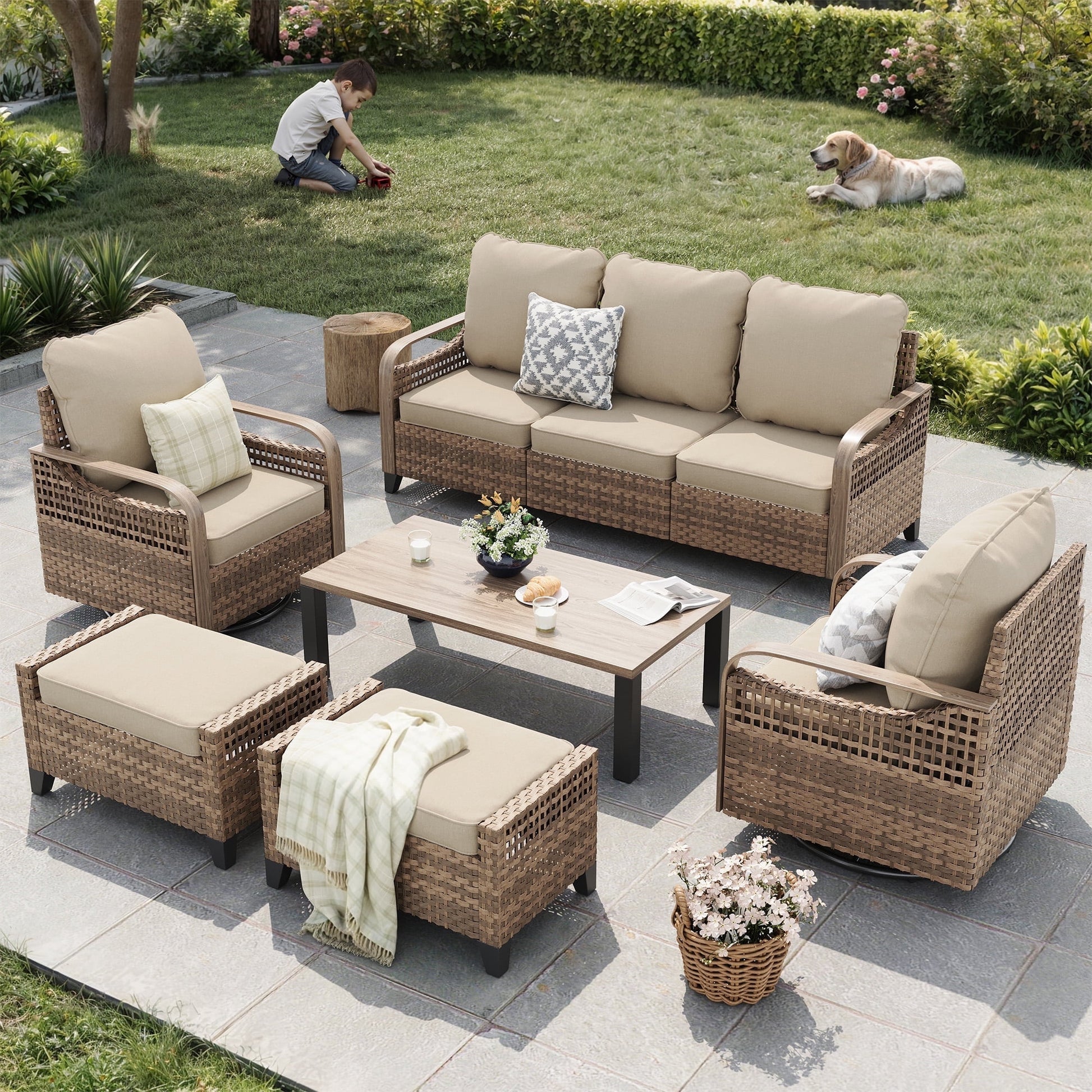 ELPOSUN 7-Seat Outdoor Patio Furniture Set - Modular Wicker Sectional Sofa with Swivel Chairs & Thickened Cushions for Garden, Porch, Yard, and Poolside