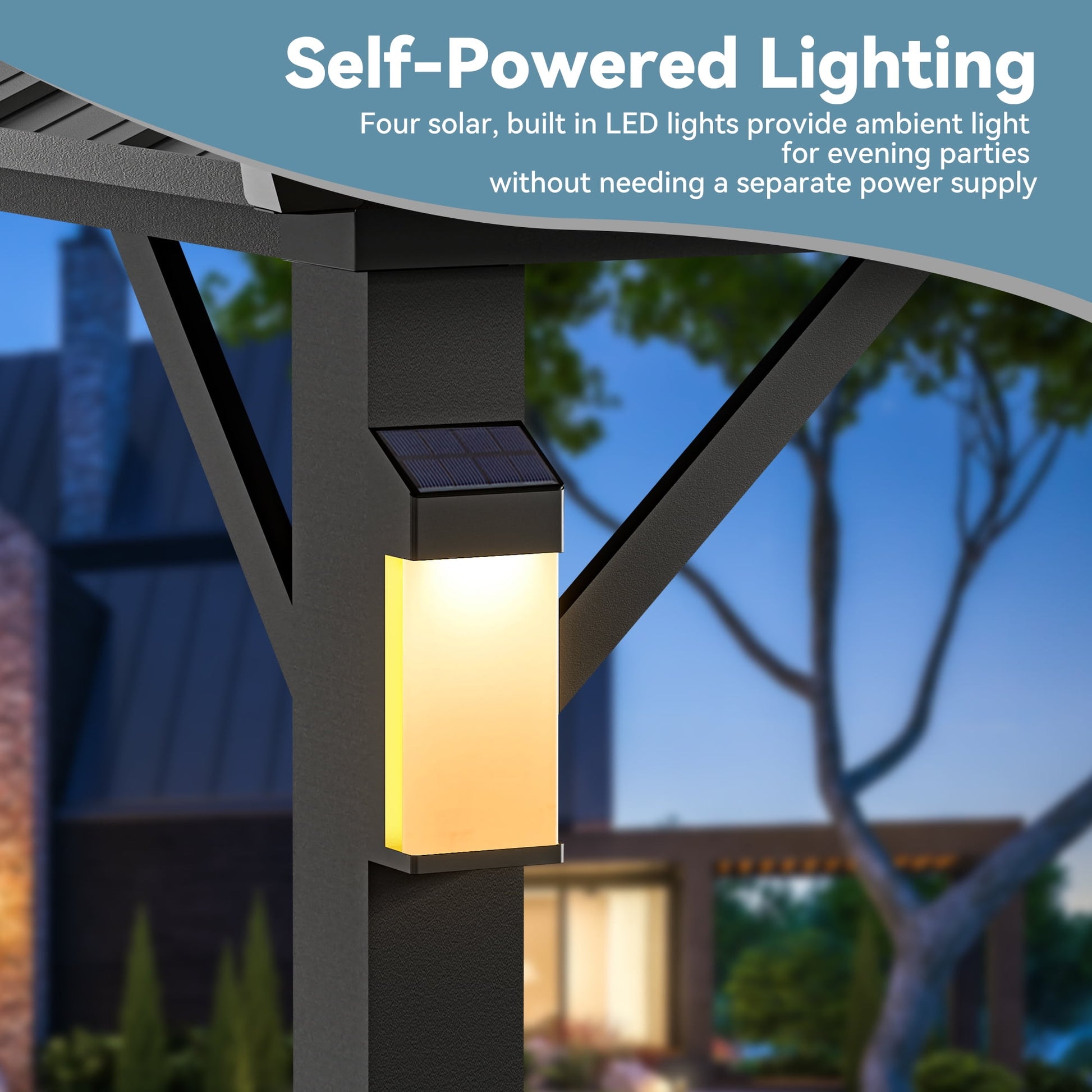 - 【Solar-Powered LED Lights】:Includes 4 solar-powered LED lights that charge during the day and illuminate at night, creating a cozy, romantic environment for your outdoor gatherings. Whether you're hosting a party or relaxing with family in the evening, the built-in lighting ensures the perfect mood without the need for external power.