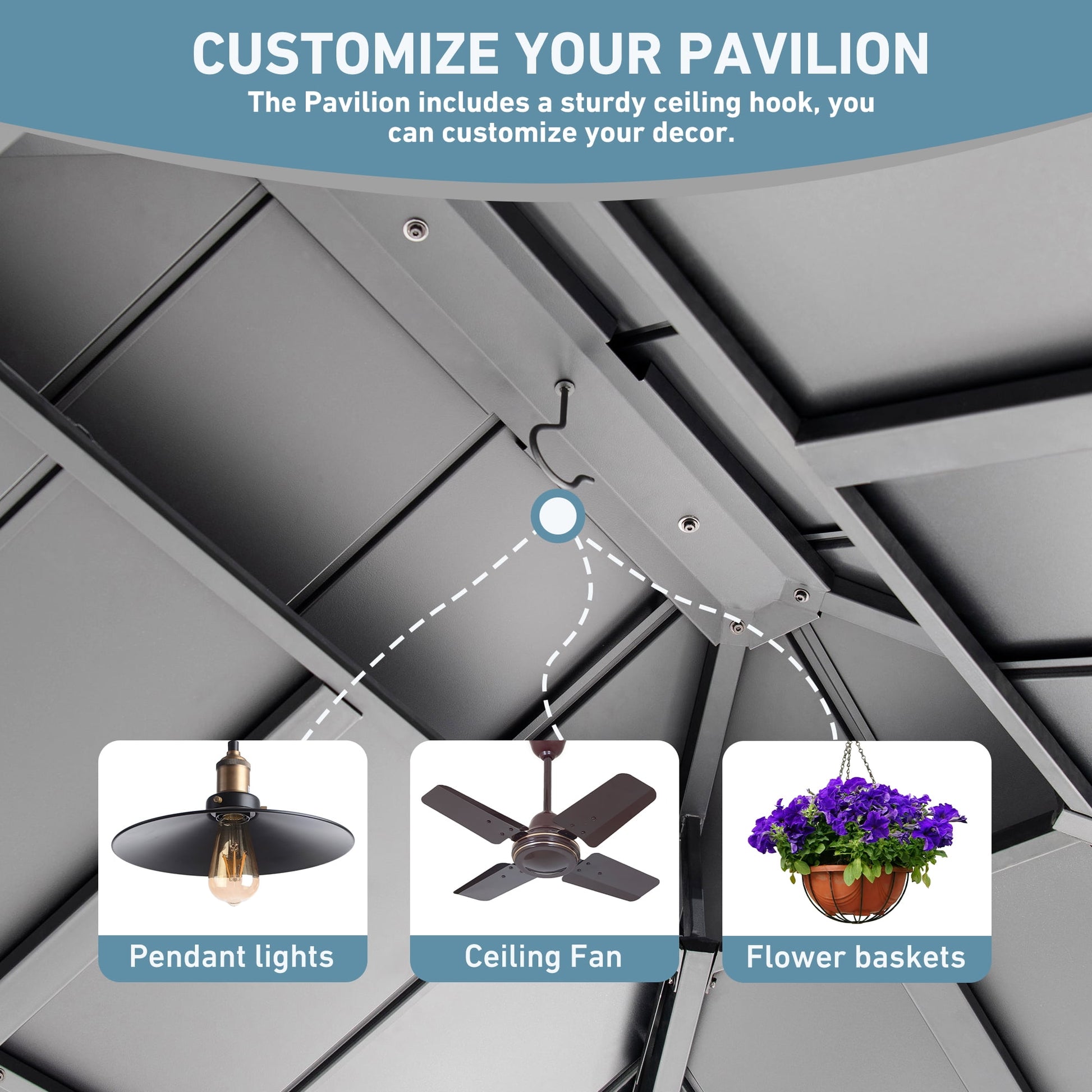 - 【Heavy-Duty Galvanized Steel Roof】:Constructed from rust-resistant, fade-resistant galvanized steel that offers outstanding durability. Designed to withstand sun, rain, and support snow loads up to 3,500 lbs for reliable year-round protection.
