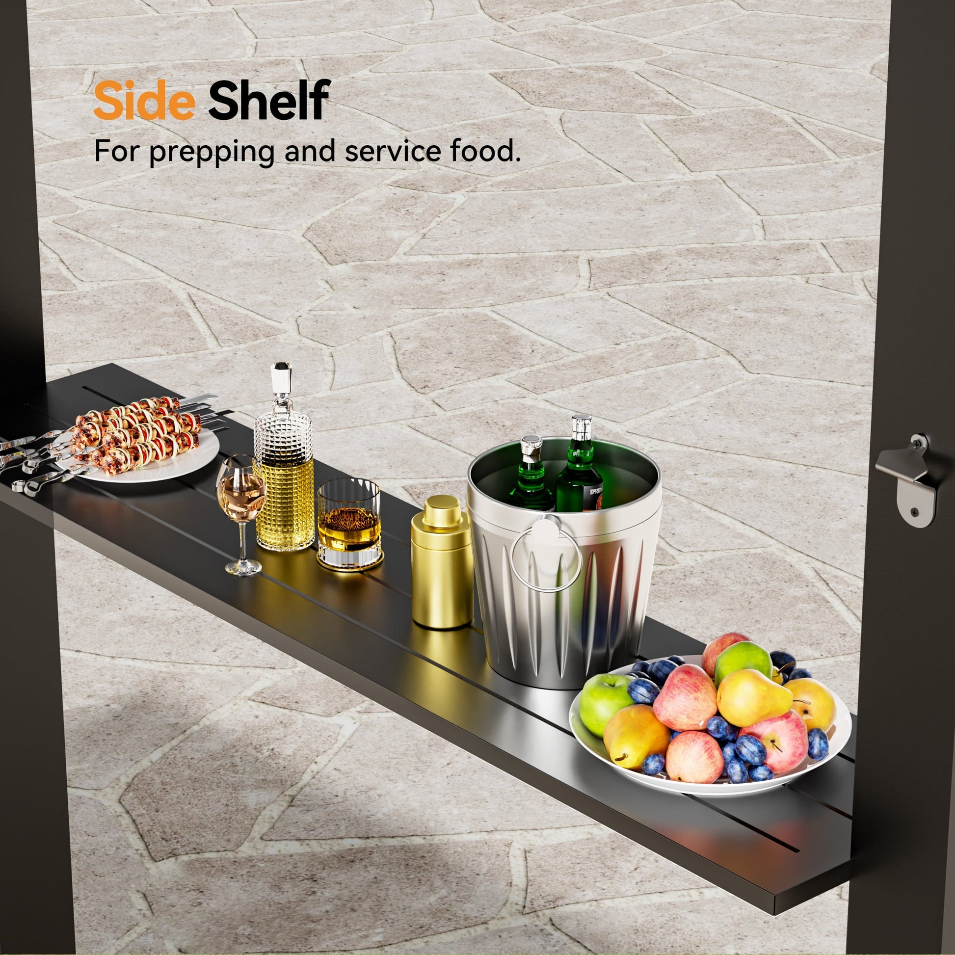- [Integrated Grill Convenience]:Features a built-in bottle opener, hooks for utensil storage, and a functional side shelf for food prep, serving, and BBQ essentials.