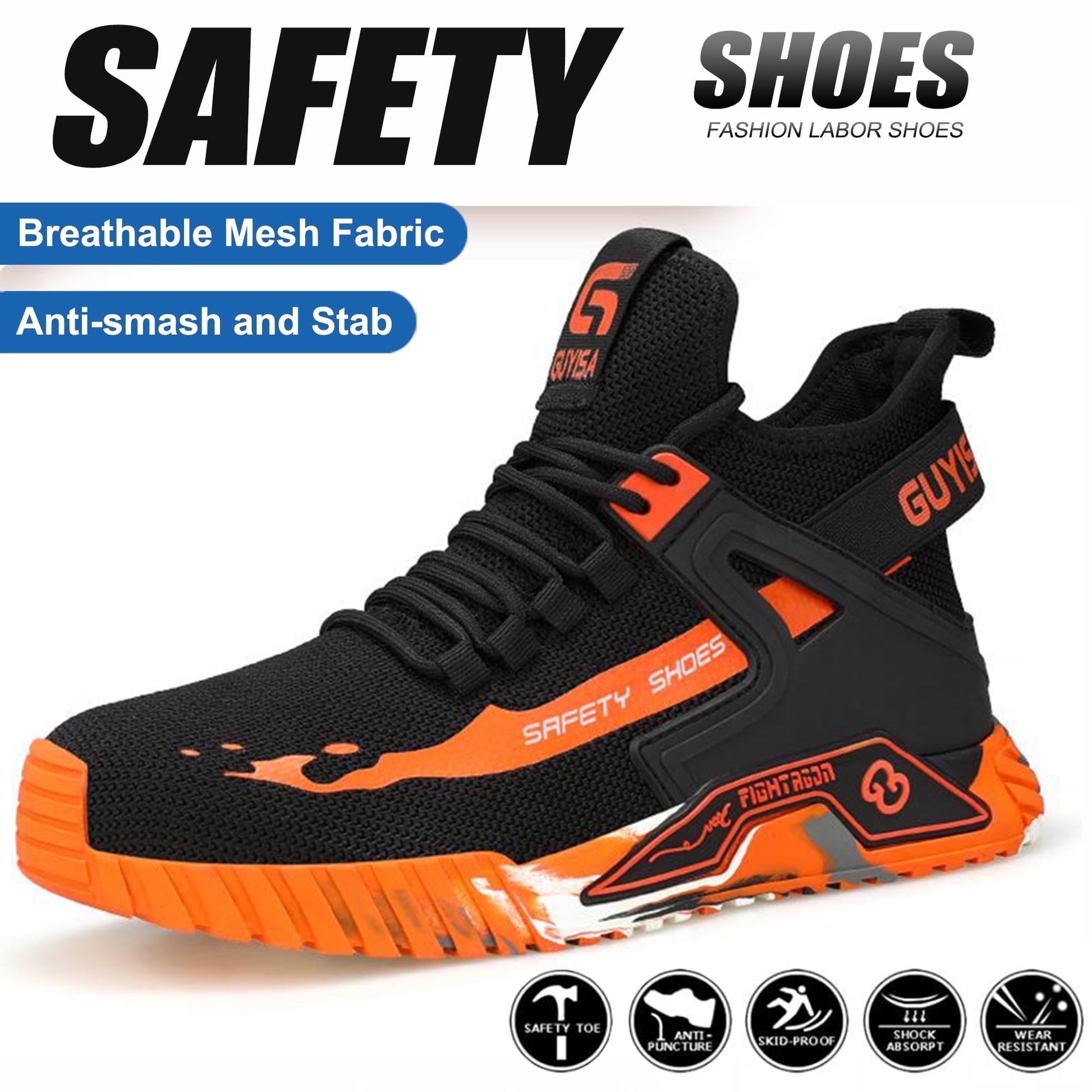 MANLEGU Outdoor Security Boots Steel Toe Boots For Men Work Safety Shoes Indestructible Slip-Resistant Shoes Stylish Cool Safety Boots Orange