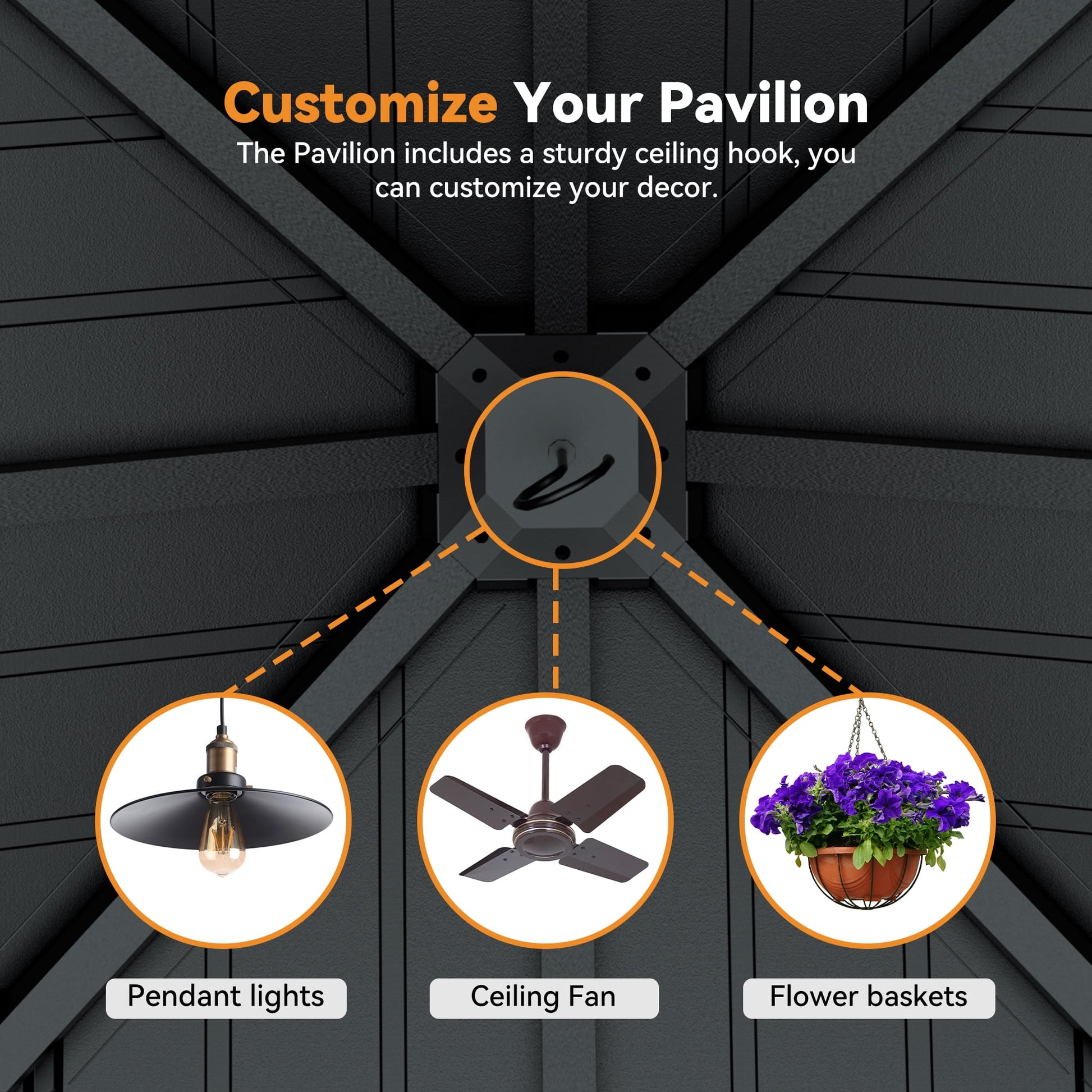 - Built-in Hook for Outdoor Lighting: A ceiling-mounted hook lets you hang lights, lanterns, or seasonal decor (not included), making it easy to create a warm and welcoming space for evening entertaining.