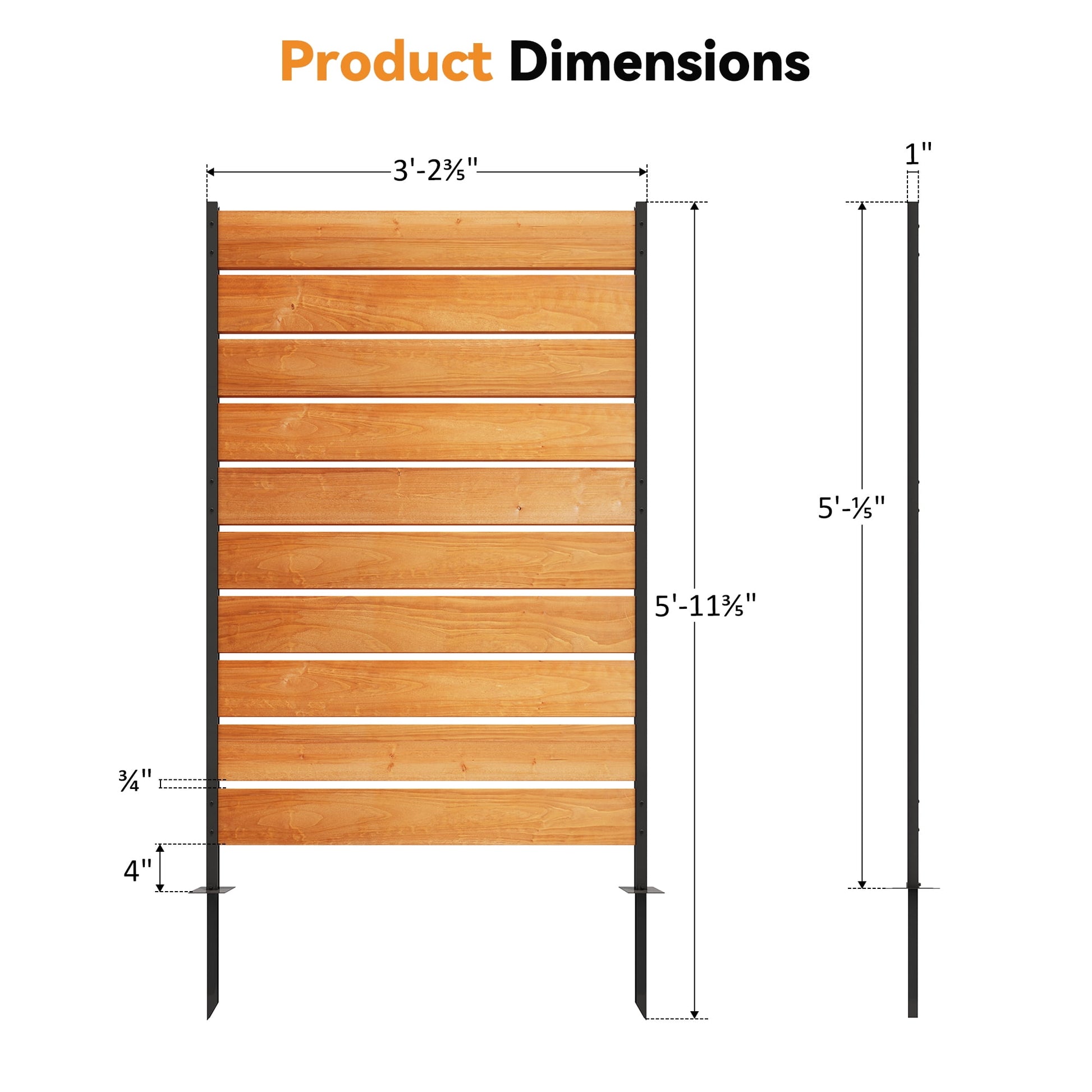 Modern Shade 5ft H x 3.3ft W No-Dig Wood Privacy Fence Panel, Outdoor Screen for Patio/Deck