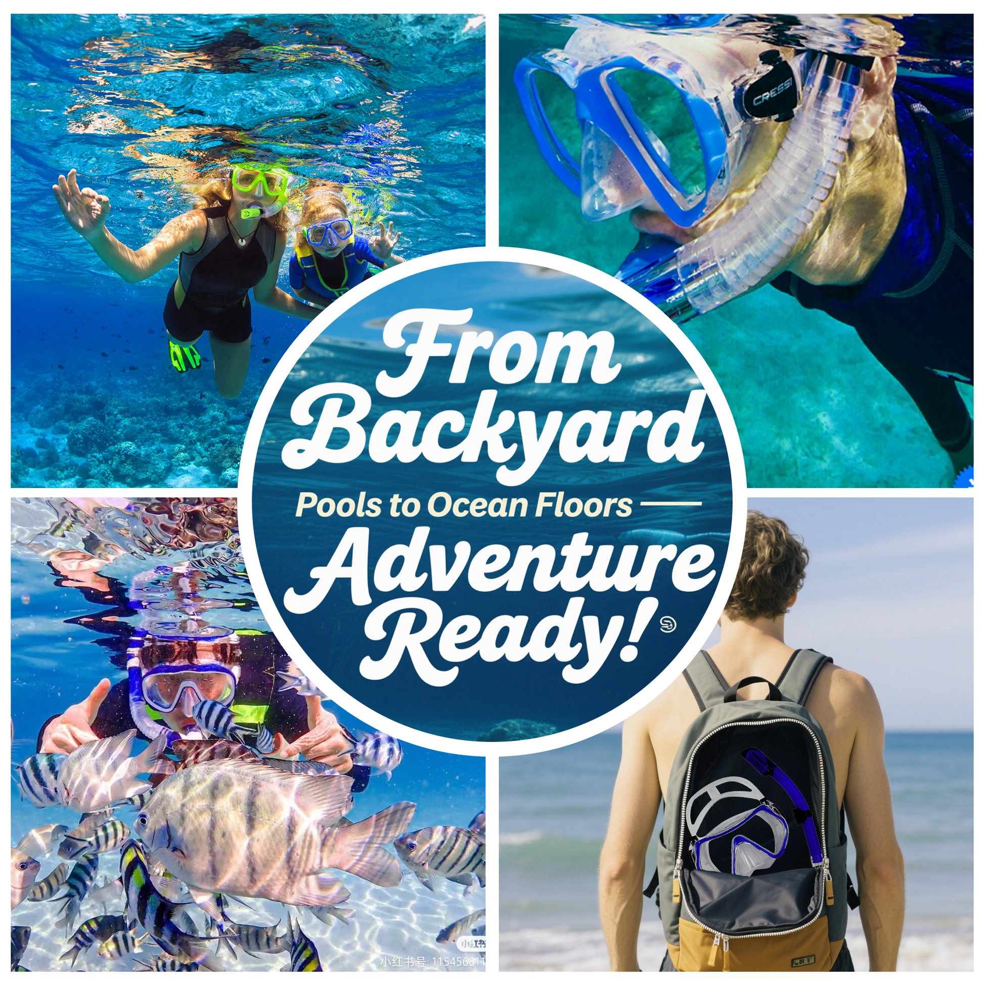 - Anti-Fog Snorkel Mask with Panoramic View - Featuring 180° distortion-free lenses that resist scratches and high-impact particles (up to 120 m/s). The anti-fog coating maintains crystal clarity, ideal for extended snorkeling adventures.