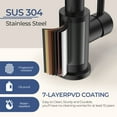- 【Premium Quality Material】This commercial spring matte black kitchen sink faucet is crafted from premium SUS 304 stainless steel with food-grade, high-temperature-resistant PEX inner hoses. It meets lead-free standards, features a 7-layer nanotechnology plating for durability, and includes a ceramic cartridge tested over 5,000,000 times for true leak-proof performance.