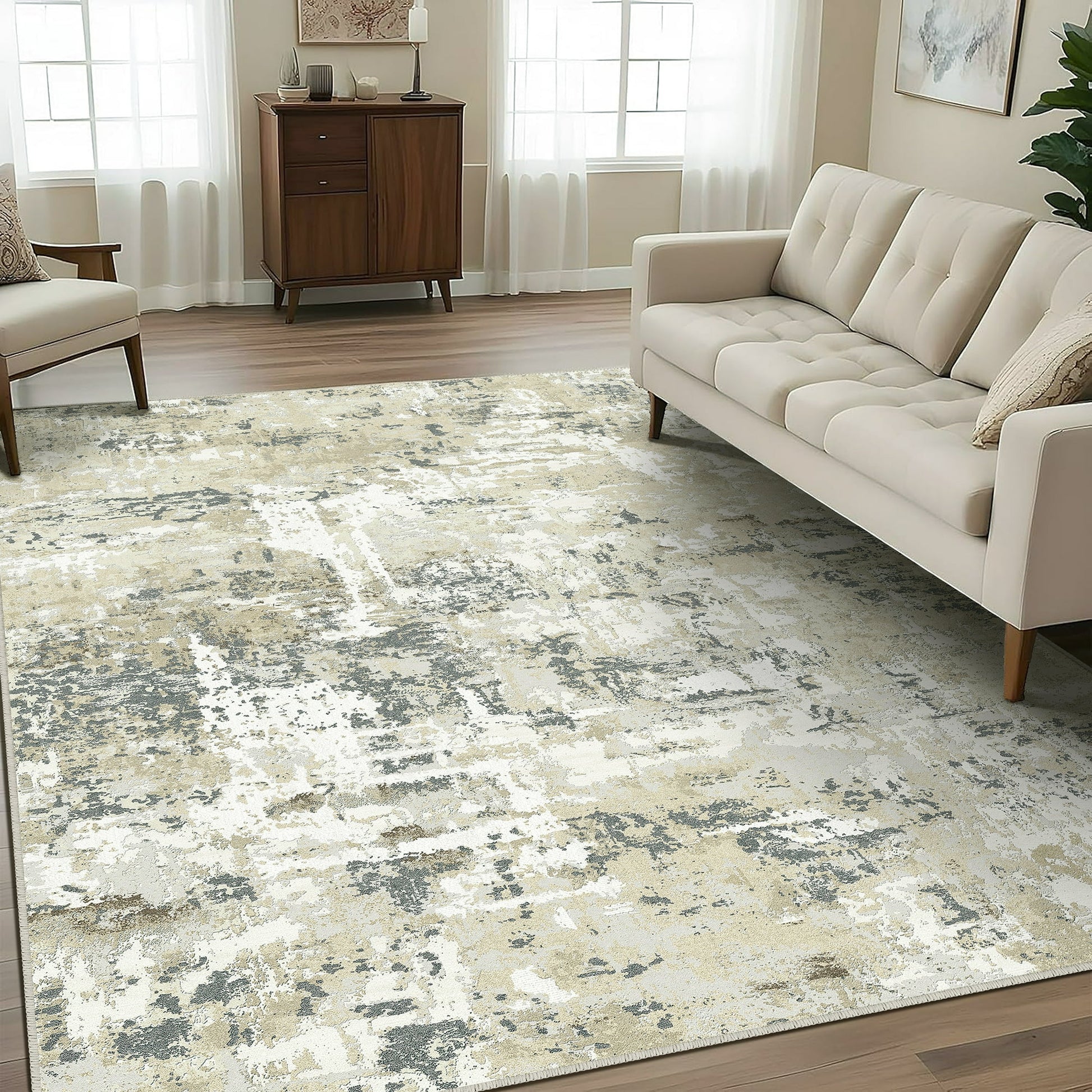 WIPONKEN 8x10 Area Rug for Living Room and Bedroom, Washable Modern Abstract Low-Pile Mat with Non-Slip Backing