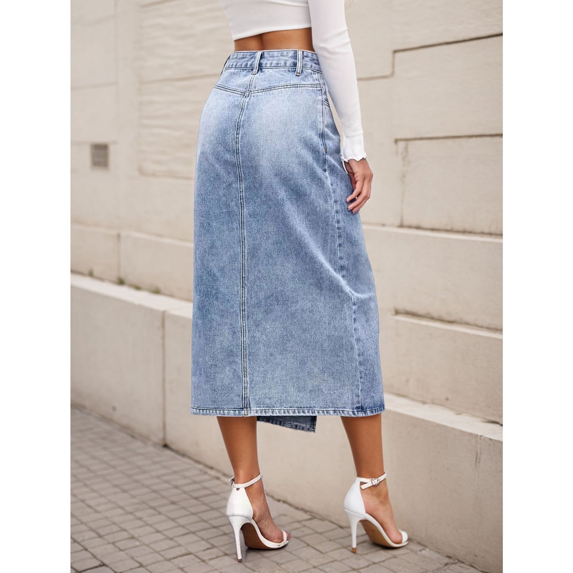 Versatile Match:Women's High Waist Casual Midi Denim Skirt can be easily paired with T-shirts, Crop Tops, tank tops, undershirts, camisoles, blouses, sandals, boots and more.